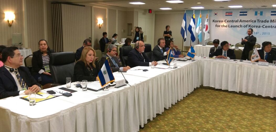 Autoridades de los Ministerios de Economía de Centroamérica participan este jueves 18 de junio en el acto oficial de lanzamiento de las negociaciones para el establecimiento de un Tratado de Libre Comercio entre nuestra región y Corea del Sur.