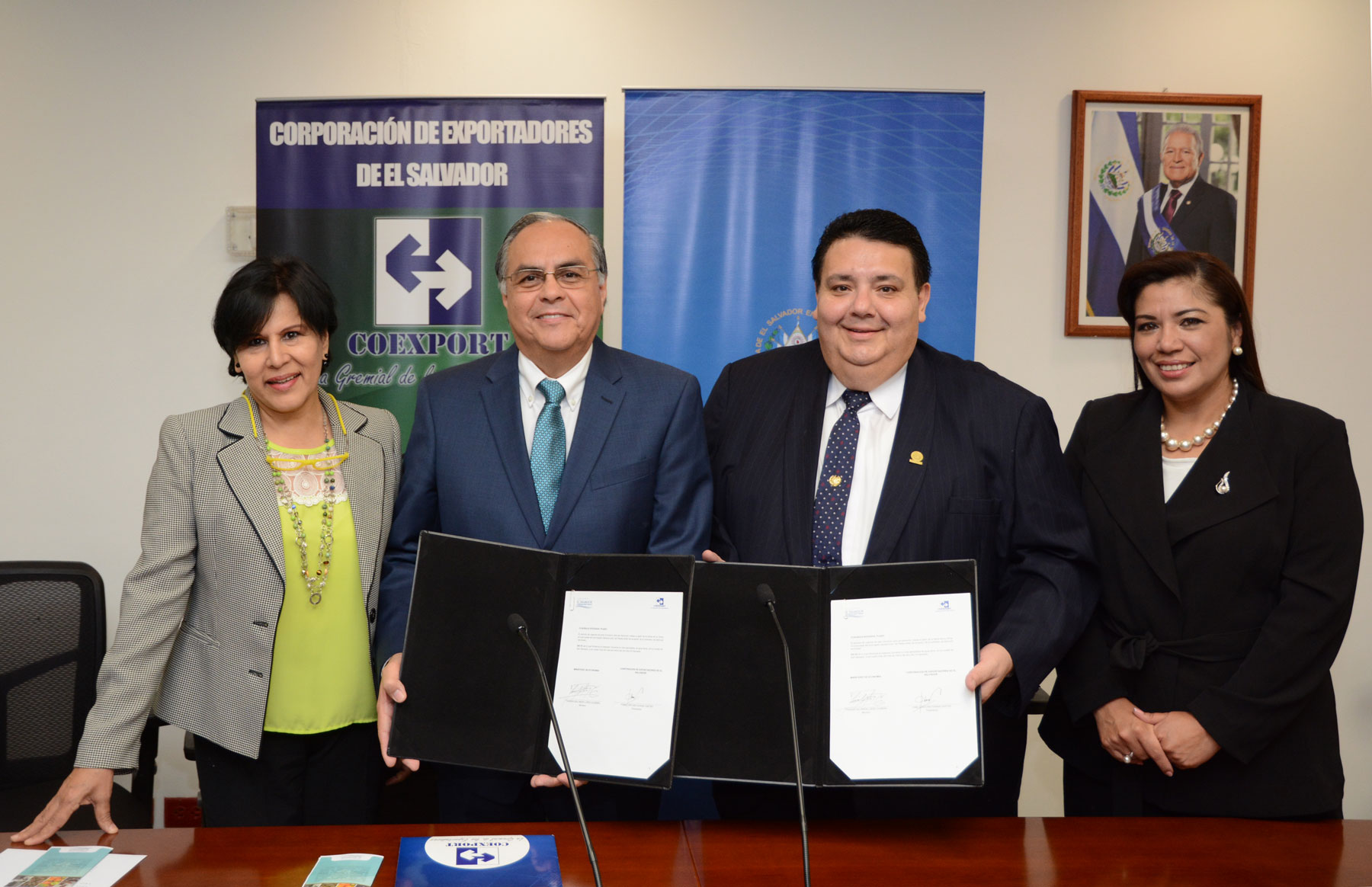 El Ministerio de Economía (MINEC) y la Corporación de Exportadores de El Salvador (COEXPORT), suscribieron este martes 17 de mayo un convenio de cooperación para la ejecución del programa “Exportar con Calidad”, con el objetivo es aunar esfuerzos entre el sector público y privado para el fortalecimiento de las exportaciones salvadoreñas.
