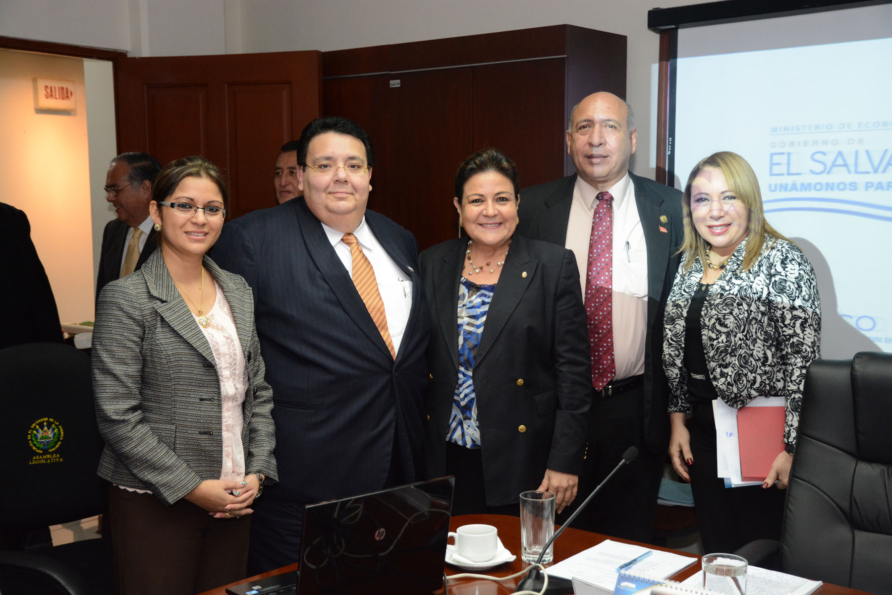 El ministro de Economía, Tharsis Salomón López y la viceministra de Economía, Luz Estrella Rodríguez; asistieron este lunes a la Comisión de Economía de la Asamblea Legislativa donde inició el estudio del proyecto de la nueva Ley de Defensa Comercial. Junto a ellos también asistieron el Director de Política Comercial (POLICOM), René Salazar; la Directora de Administración de Tratados Comerciales (DATCO), Margarita Ortez; el jefe de Asesores Giovanni Berti y líderes del sector empresarial relacionados con la elaboración del proyecto de ley.