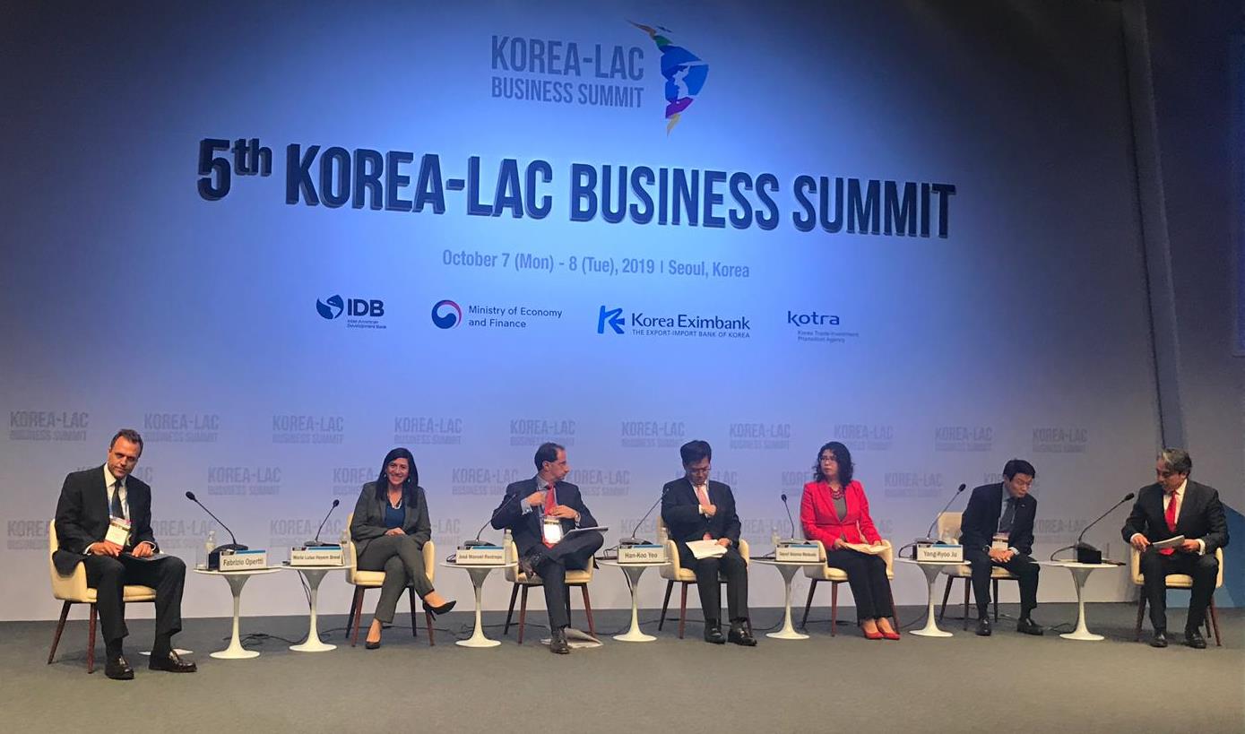 La Ministra de Economía, María Luisa Hayem, participó este lunes siete y martes ocho de octubre, en la 5ta Cumbre Empresarial Corea LAC 2019, la cual busca fortalecer y expandir los lazos comerciales y de cooperación entre Corea del Sur, América Latina y el Caribe.