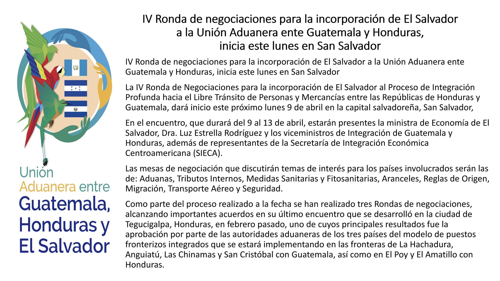 Inicio de IV Ronda de negociaciones para Integración Profunda con Guatemala y Honduras