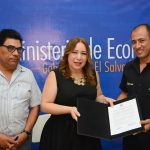 27/04/2018 10:19 AM En el marco del lanzamiento de la segunda convocatoria del concurso de Fondos no reembolsables ‘Corredores Productivos 2018’ realizado este 26 de abril en Jiquilisco, Usulután, La ministra de Economía, Luz Estrella Rodríguez, entregó al cooperativista Moisés Hernández, la documentación que sustenta la solicitud de Denominación de […]