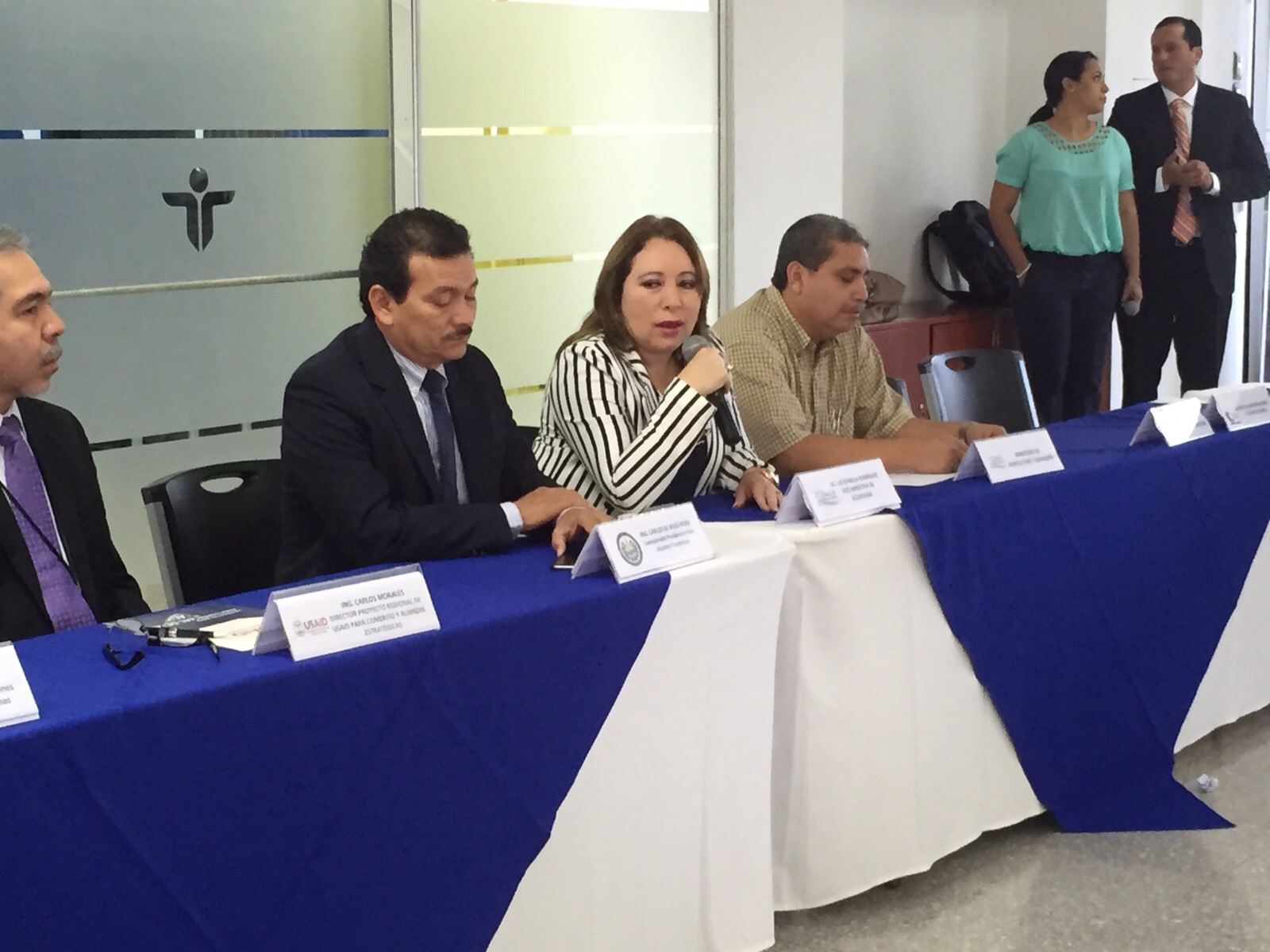 La viceministra de Economía, Luz Estrella Rodríguez, presidió junto al Comisionado para Asuntos Fronterizos, Carlos Pozo y representantes de USAID, Ministerio de Agricultura y la Dirección General de Aduanas una reunión con representantes de empresas navieras y transportes de carga para presentar los avances que se van realizando con el apoyo de USAID en la implementación de la Estrategia Regional de Facilitación del Comercio; la cual fue aprobada en octubre de este año bajo la presidencia Pro Témpore del Subsistema de Integración Económica Centroamericana, ostentada por nuestro país y liderada por el Ministerio de Economía.